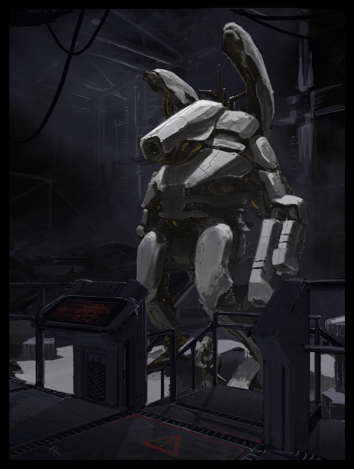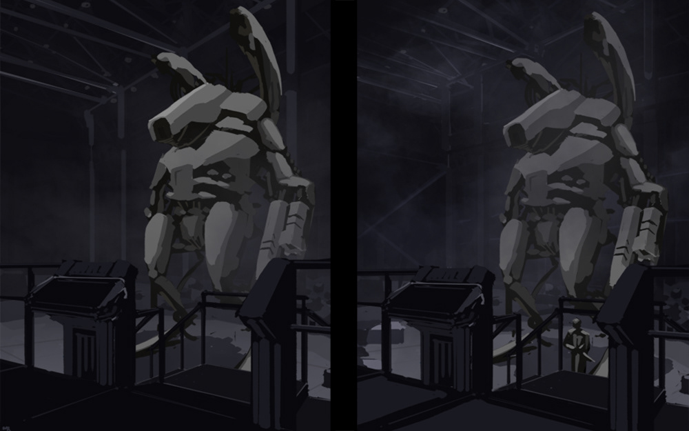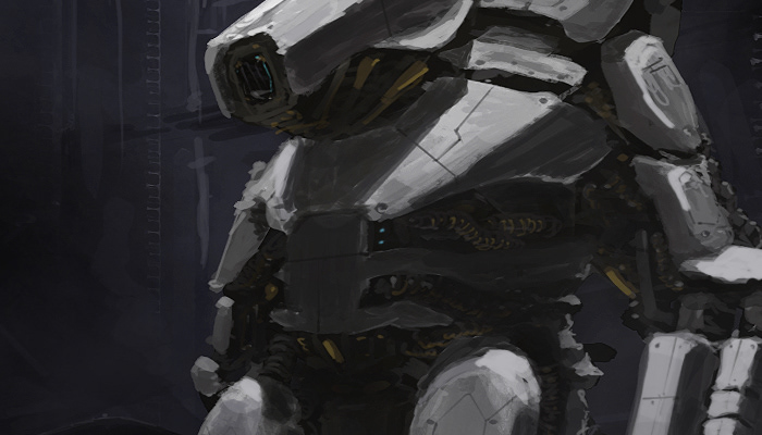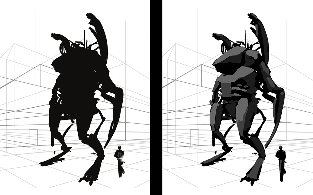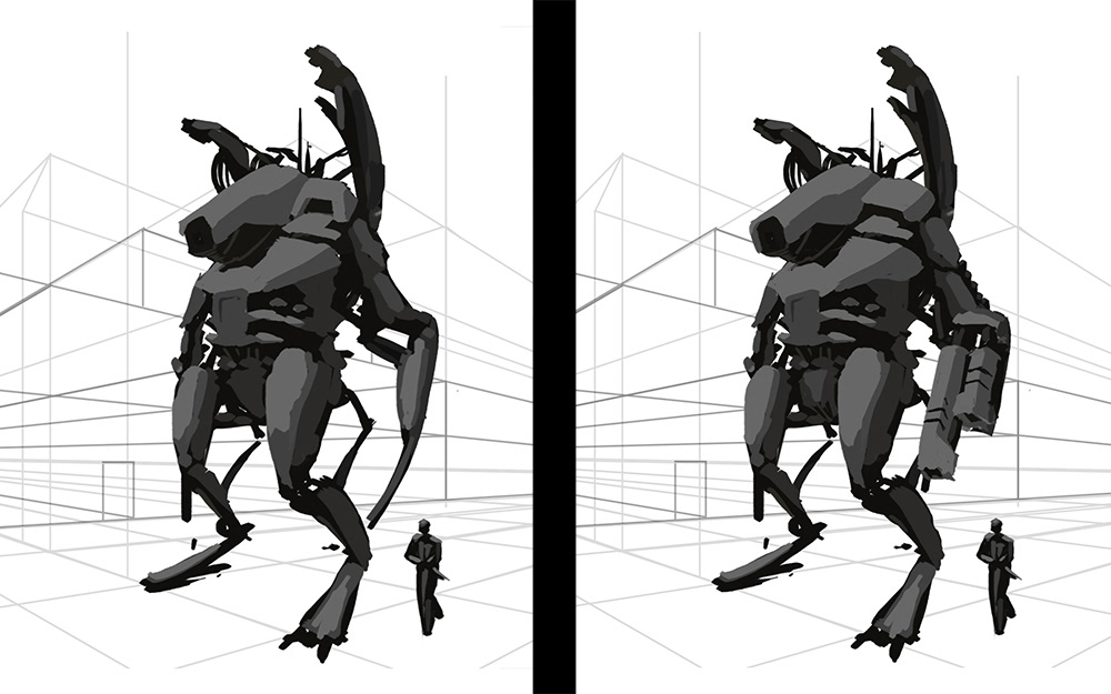 A fun robot drawing started from a silhouette into the final.